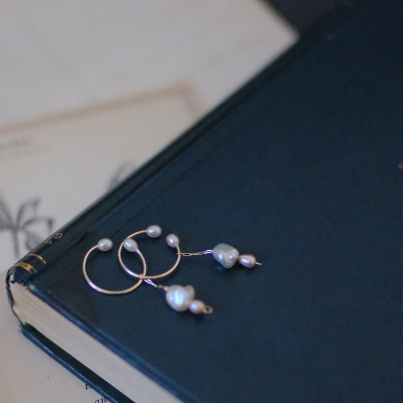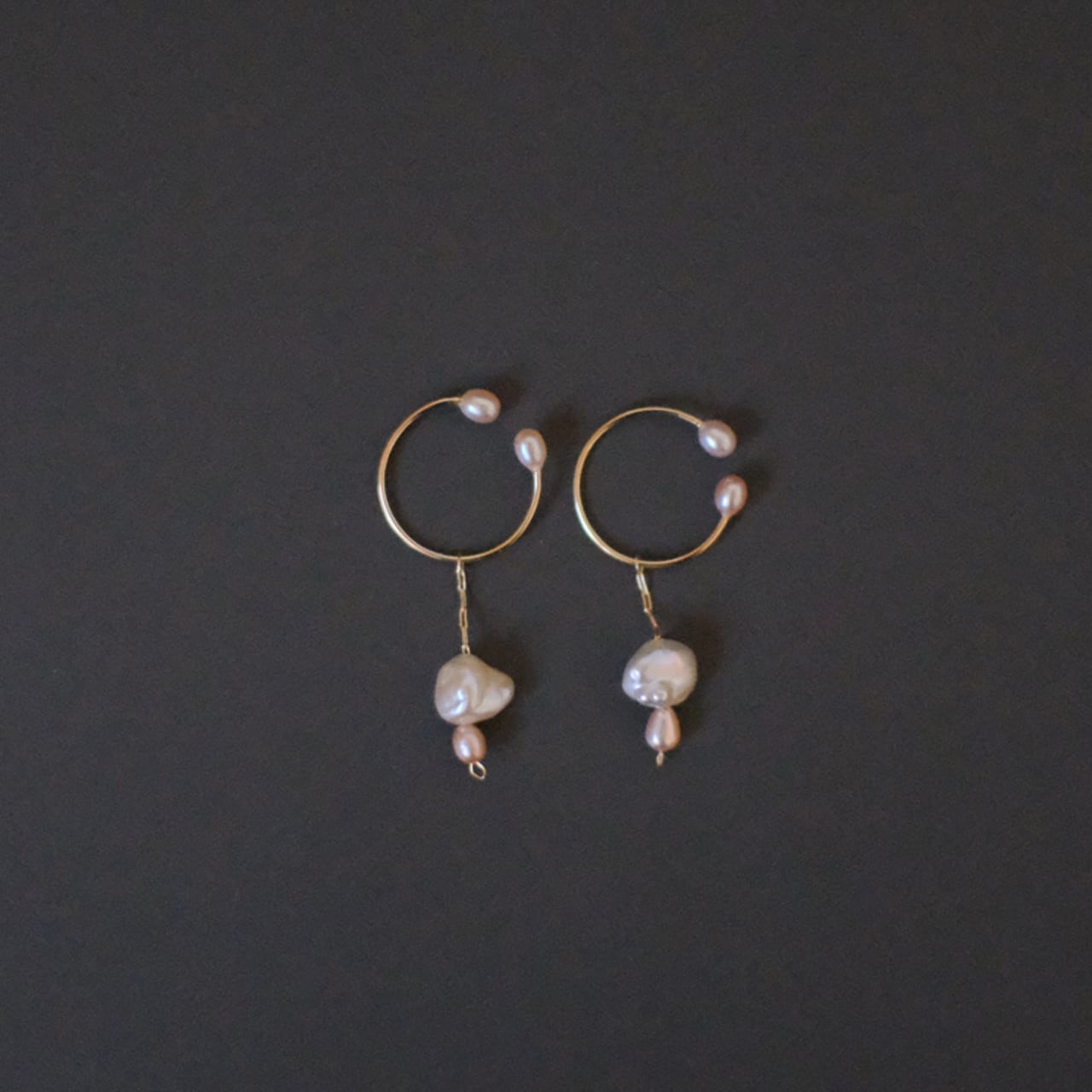 クレオパトラパールと優しいピンクの小粒パールのシンプルなイヤーカフ。