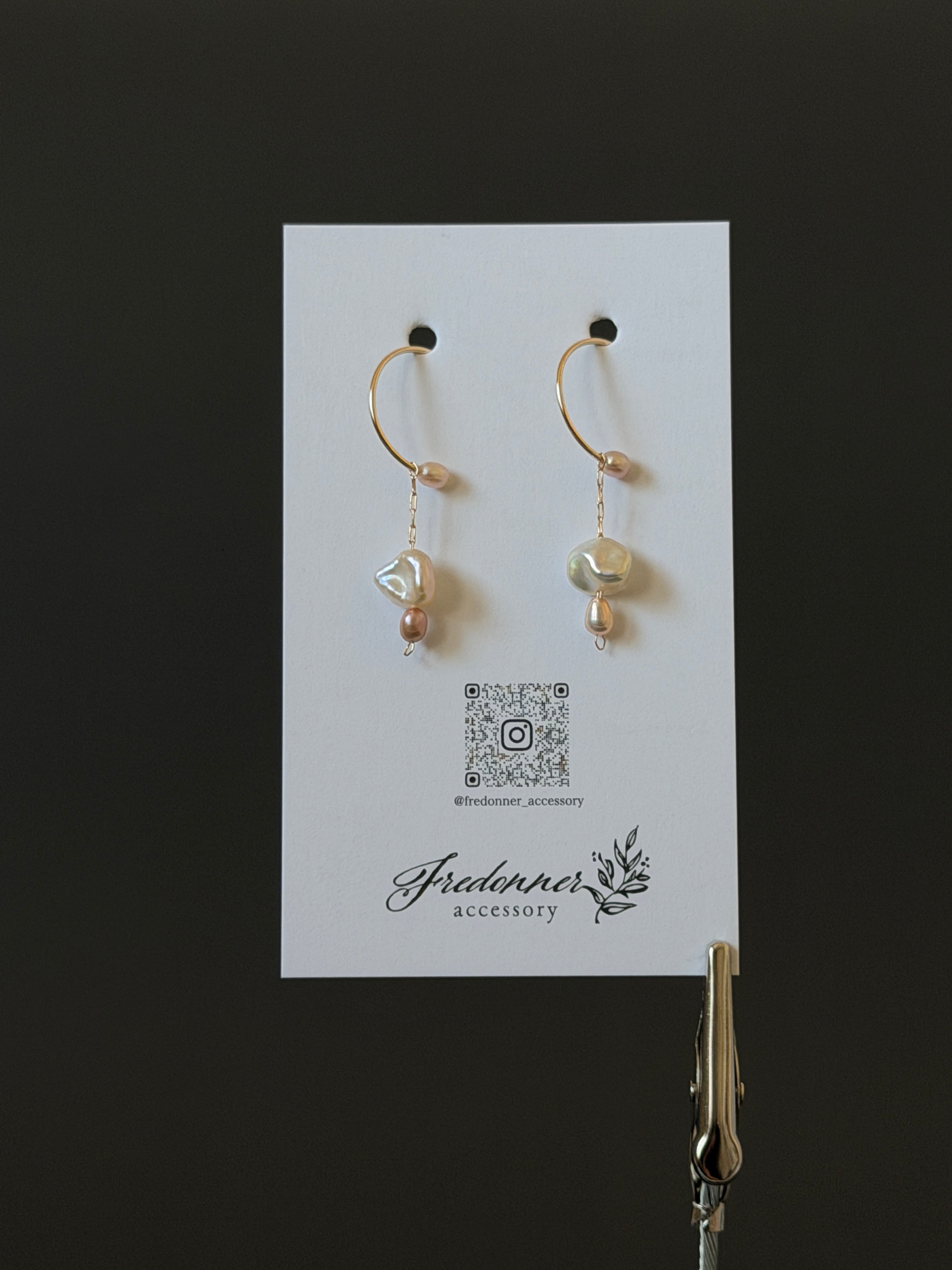 ・素材:クレオパトラパール、サージカルステンレス極細チェーン、14KGFワイヤー、小粒淡水パール