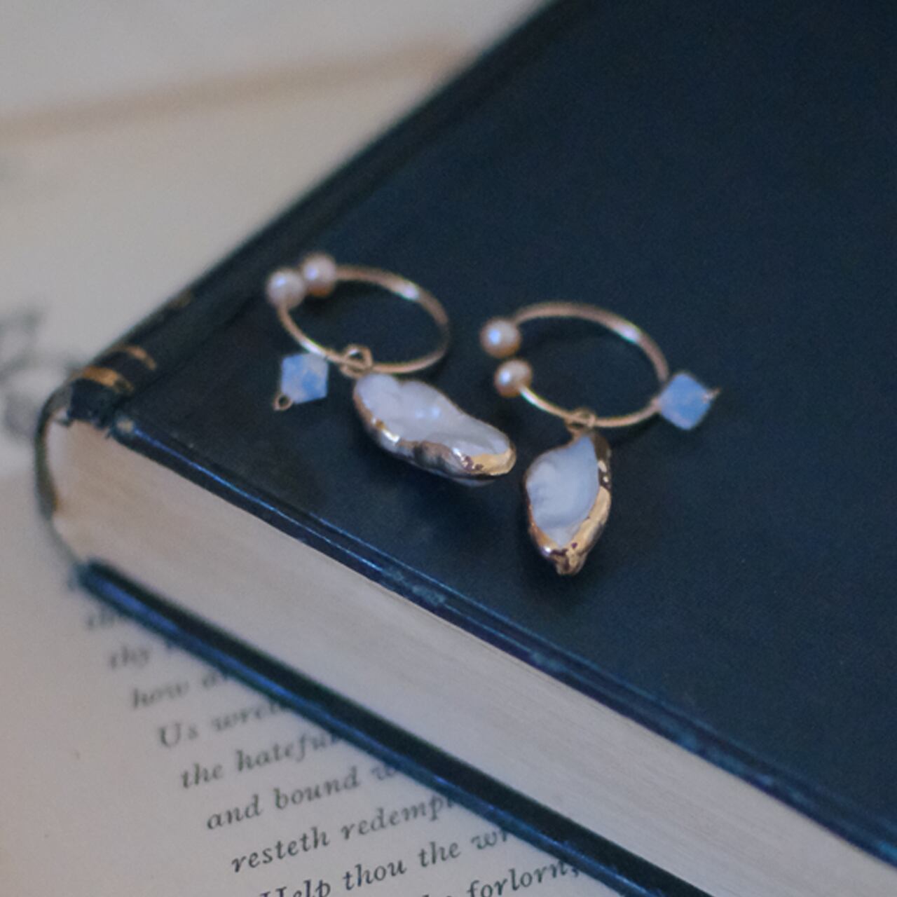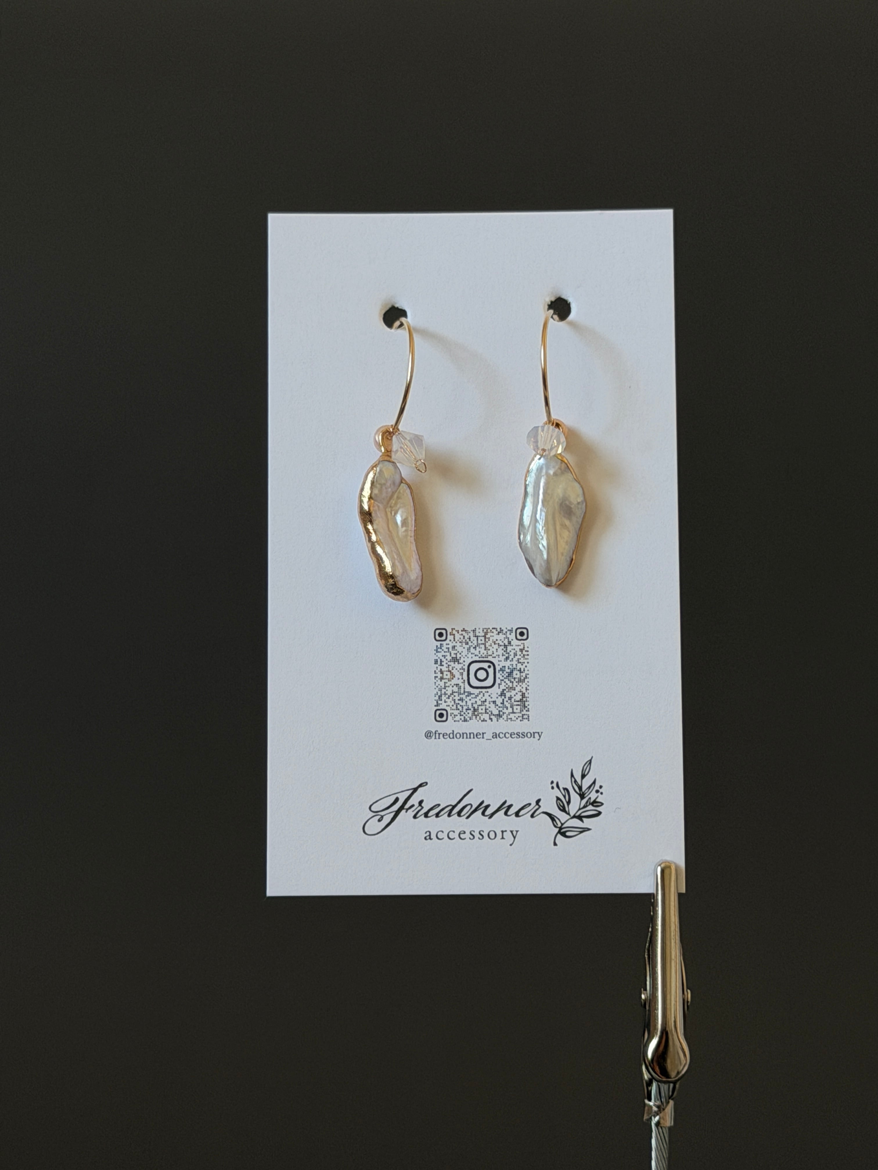 ・素材:エレクトロフォームパール(銅)、Swarovski5301、サージカルステンレス極細チェーン、14KGFワイヤー、小粒淡水パール